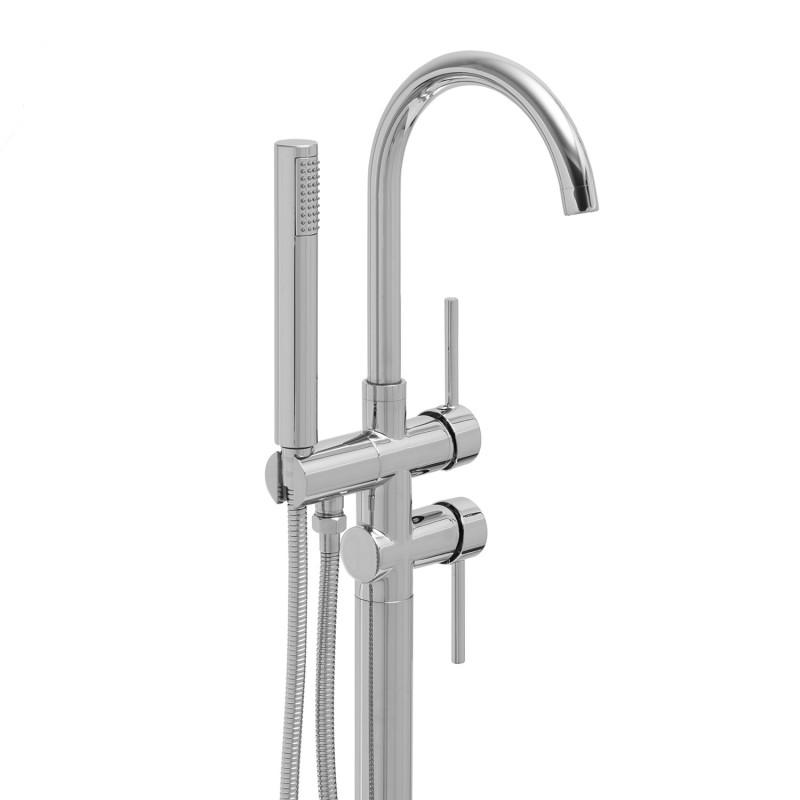Mechaniczna bateria wannowo-prysznicowa, wolnostojąca, jednouchwytowa z obrotową wylewką z przełącznikiem.