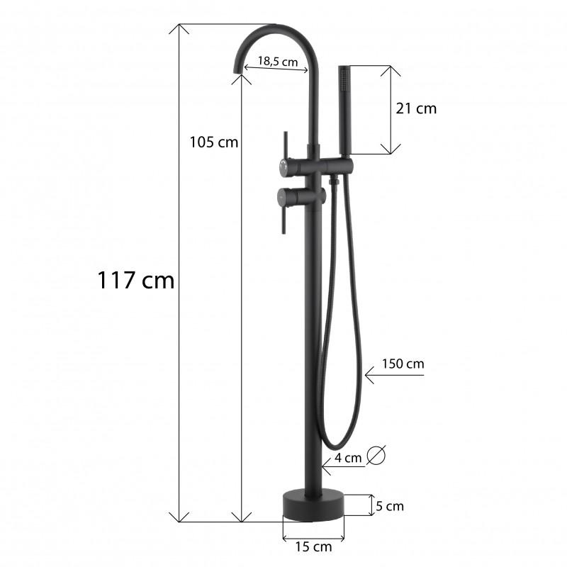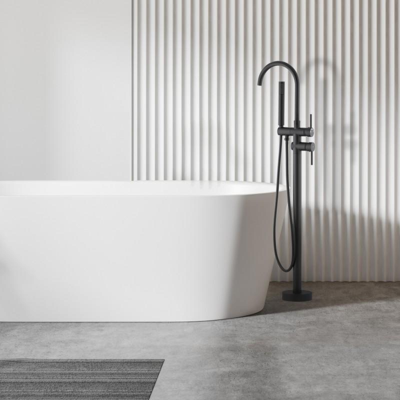 Bateria wannowa stojąca prezentuje się niezwykle stylowo dzięki swojej czarnej powłoce, dodając klasę i nowoczesność do każdej łazienki. Minimalistyczny design sprawia, że stanowi idealne dopełnienie nowoczesnych i eleganckich wnętrz.
