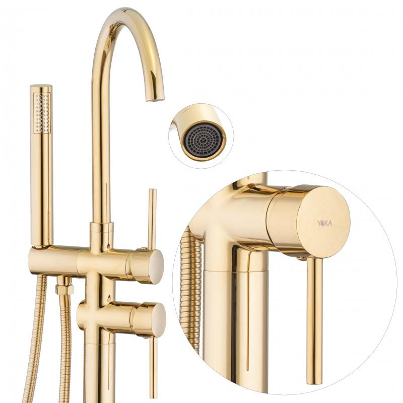 Mechaniczna bateria wannowo-prysznicowa, wolnostojąca, jednouchwytowa z obrotową wylewką z przełącznikiem.Zarówno 35 mm głowica ceramiczna jak i perlator oszczędzają nawet do 40% wody.Zestaw zawiera 2 wysokiej jakości wężyki w oplocie ze stali nierdzewnej o długości 80 cm ze standardowym przyłączem 1/2 cala oraz komplet akcesoriów do montażu baterii.