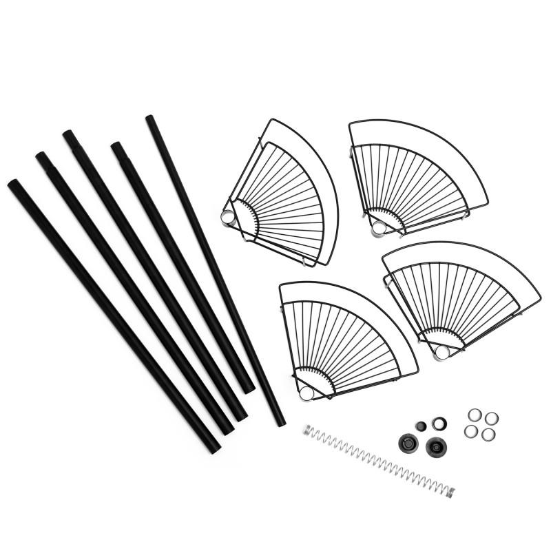 Standardowo (dzięki sprężynie) drążek montażowy reguluje się w zakresie 256-276 cm. Dodatkowo możemy również zmniejszać jego wysokość poprzez usunięcie pojedynczych słupków.