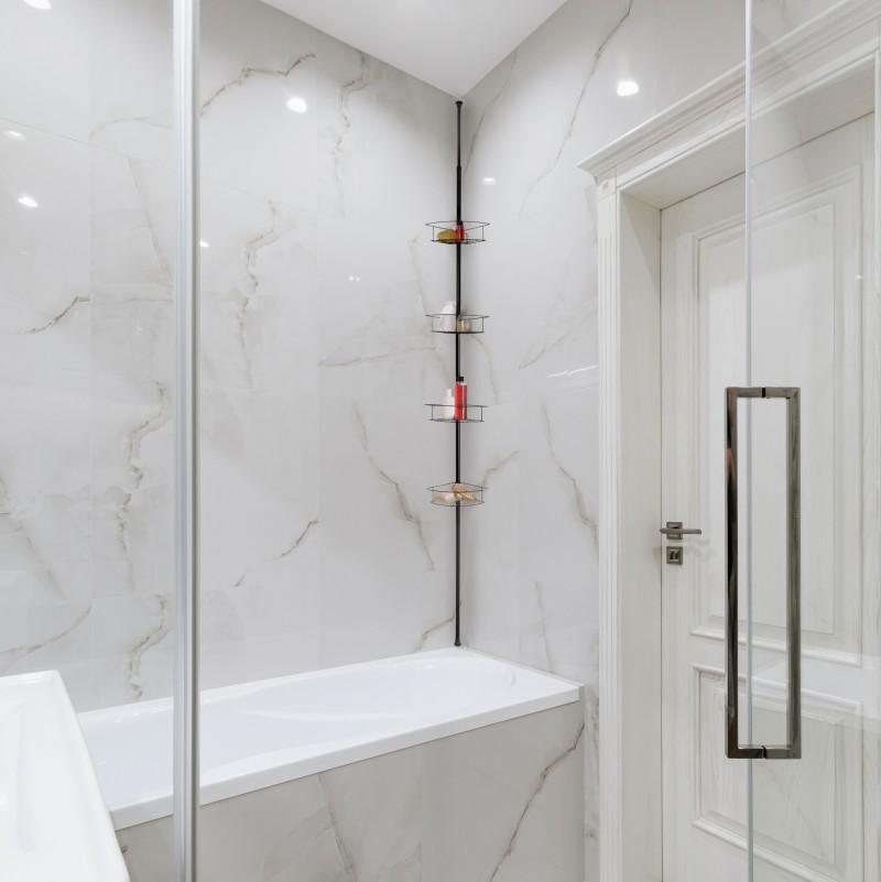 Montaż tej półki jest niezwykle prosty i wygodny. Nie musisz się martwić o wiercenie ani klejenie – wystarczy umieścić półkę w odpowiednim miejscu, a drążek teleskopowy sam się dopasuje. To oszczędza czas i pozwala uniknąć uszkodzeń ścian łazienki.