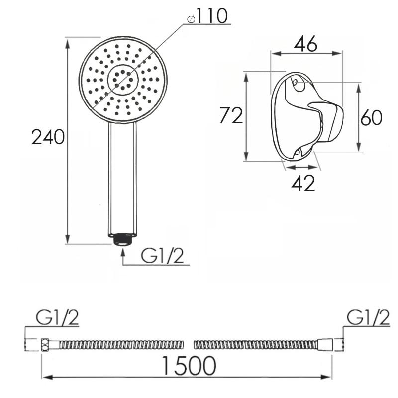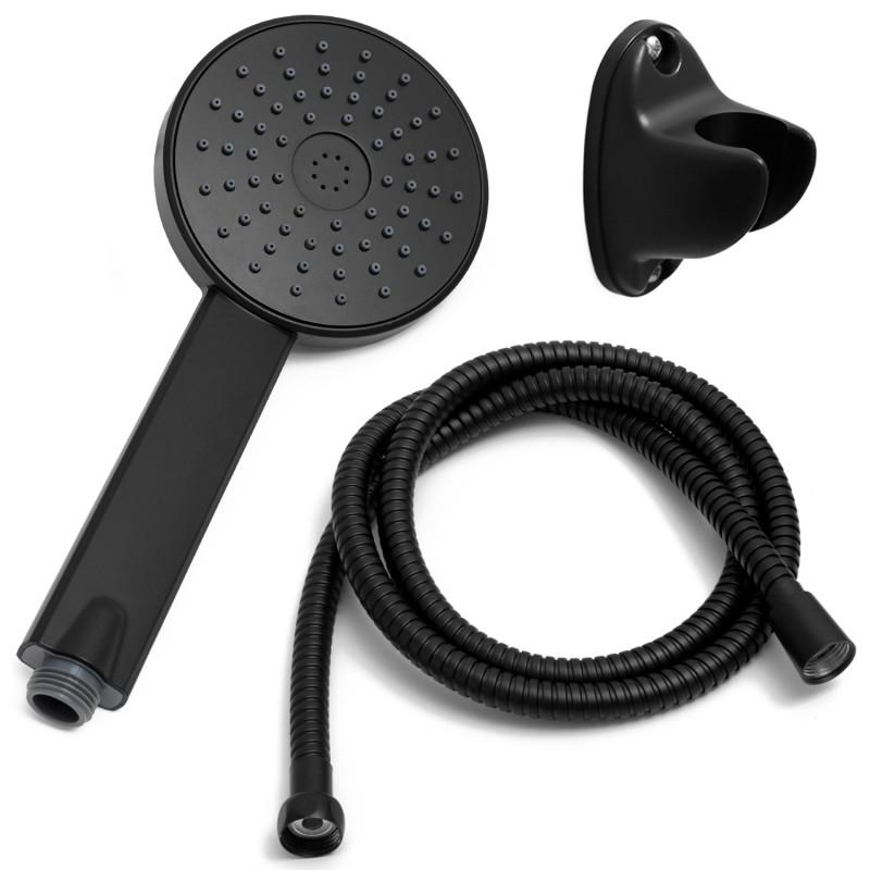 Jednofunkcyjna, okrągła słuchawka prysznicowa w zestawie z wężem oraz uchwytem ściennym. Wykonana została z twardego i wytrzymałego tworzywa, malowanego proszkowo na kolor czarny.