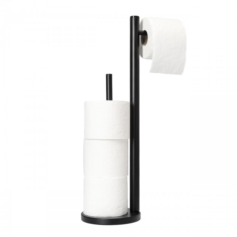 Elegancki stojak na zapasowy papier toaletowy wraz z uchwytem na dodatkową rolkę. Stojak wykonany z wysokiej jakości stali malowanej proszkowo. Duża okrągła podstawa i podkładki z tworzywa sztucznego zapewniają doskonałą stabilność.