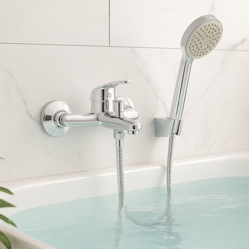 Rodzaj baterii: Wannowo-prysznicowy, ścienny, jednouchwytowy, dwuotworowy, z przełącznikiem i słuchawką prysznicową