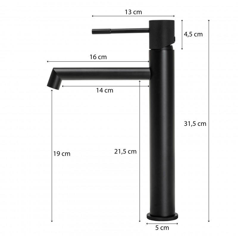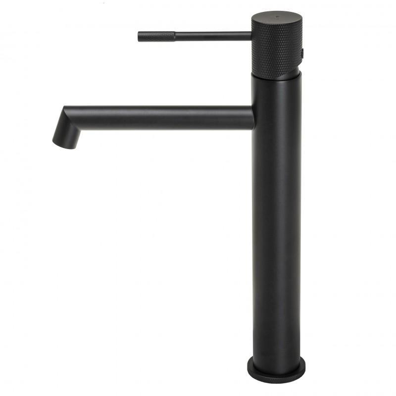 Wysoka bateria umywalkowa, stojąca, jednouchwytowa ze stałą wylewką. Ceramiczna wymienna głowica 35 mm.