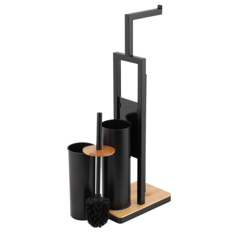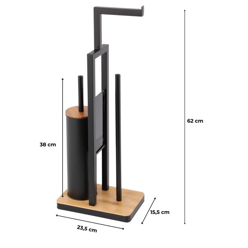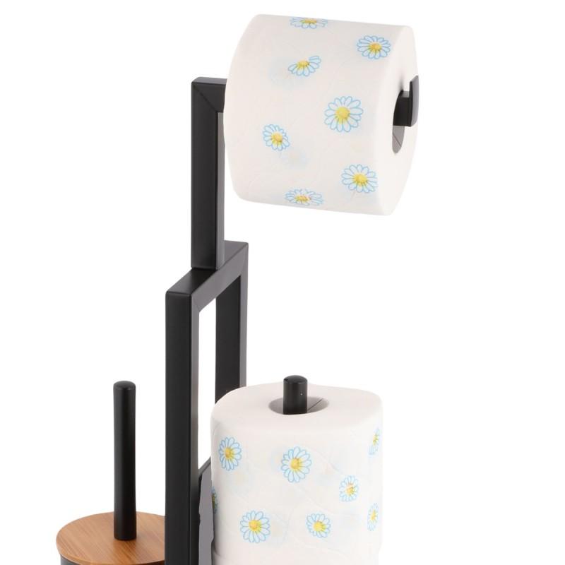 Elegancki stojak na zapasowy papier toaletowy wraz ze szczotką WC oraz z uchwytem na dodatkowe 4 rolki.