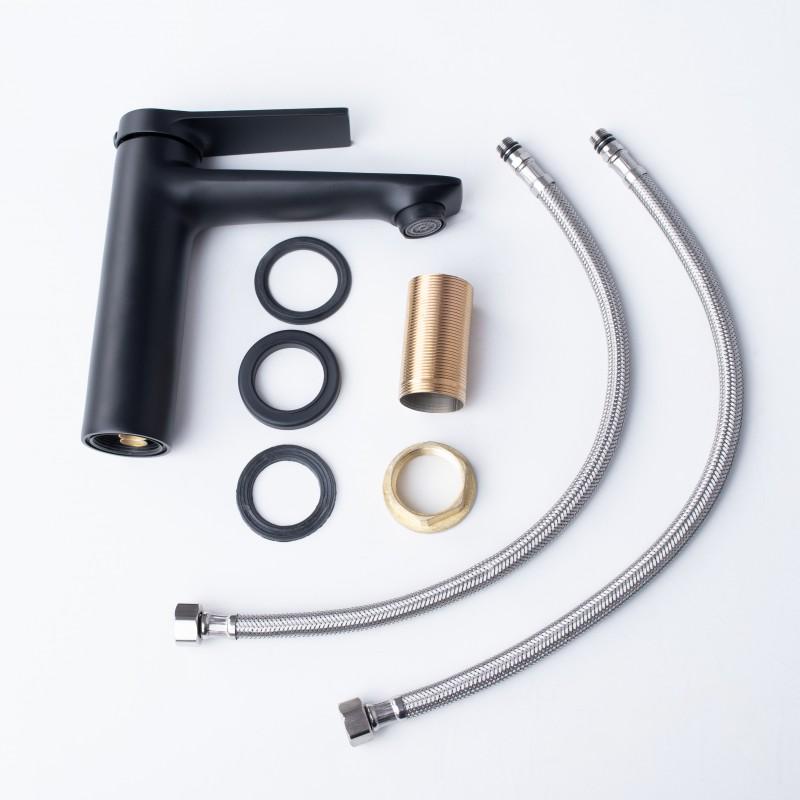Bateria jest wyposażona w dwa węże przyłączeniowe o długości 40 cm, co gwarantuje elastyczność i ułatwia proces instalacji. To rozwiązanie sprawia, że bateria umywalkowa doskonale integruje się z różnymi konfiguracjami łazienek.