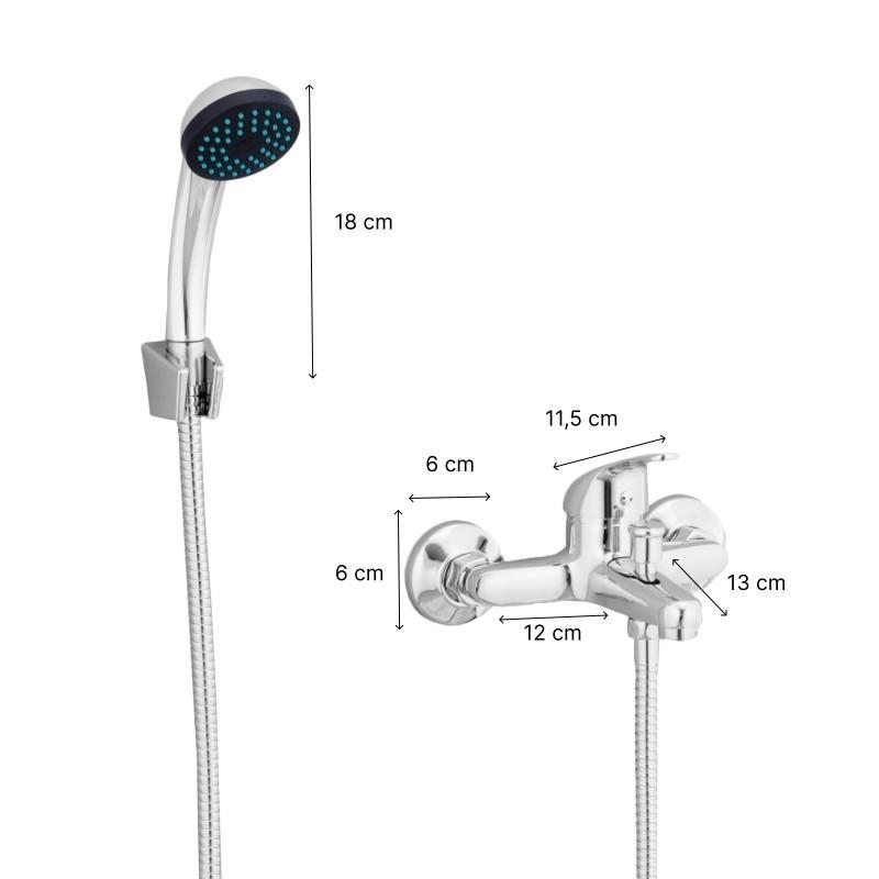 Rodzaj baterii: Wannowo-prysznicowy, ścienny, jednouchwytowy, dwuotworowy, z przełącznikiem i słuchawką prysznicową