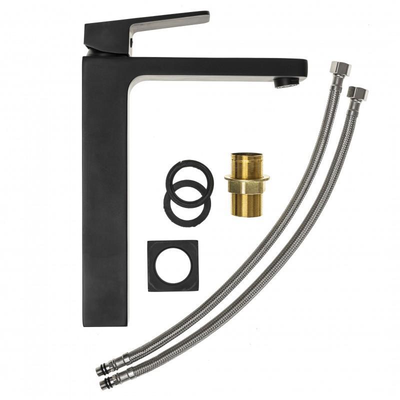 Zestaw zawiera 2 wysokiej jakości wężyki w oplocie ze stali nierdzewnej o długości 40 cm ze standardowym przyłączem 3/8 cala oraz komplet akcesoriów do montażu baterii.