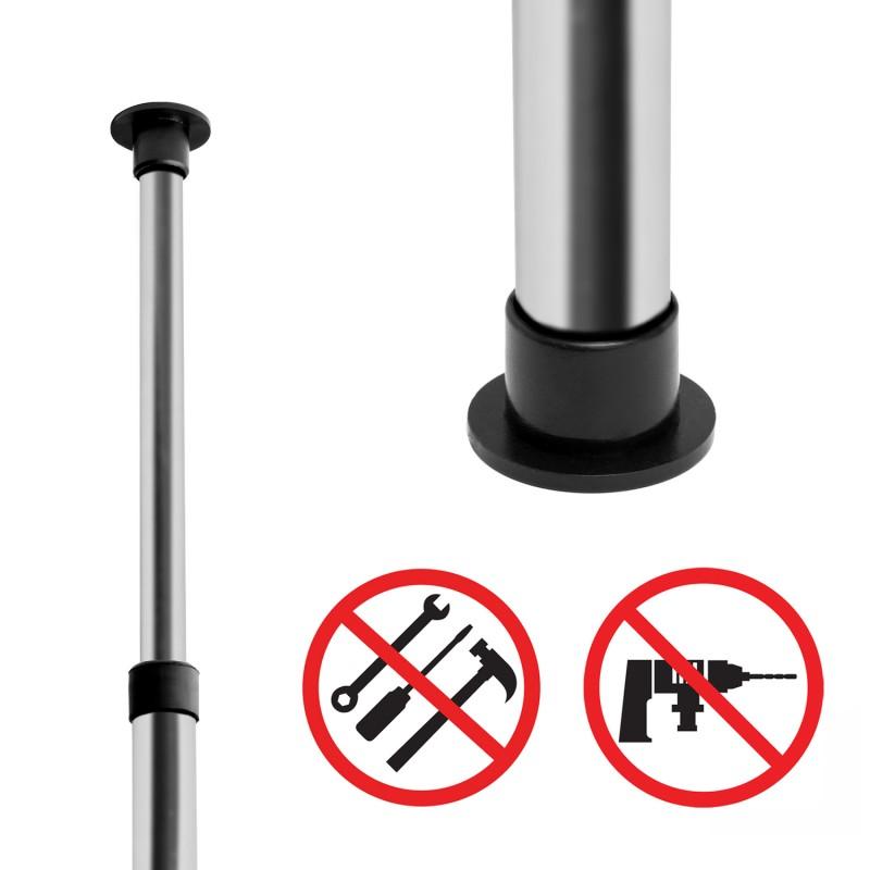 ✅ Montaż bez wiercenia i klejenia (półkę montujemy ustawiając drążek miedzy podłogą, a sufitem)