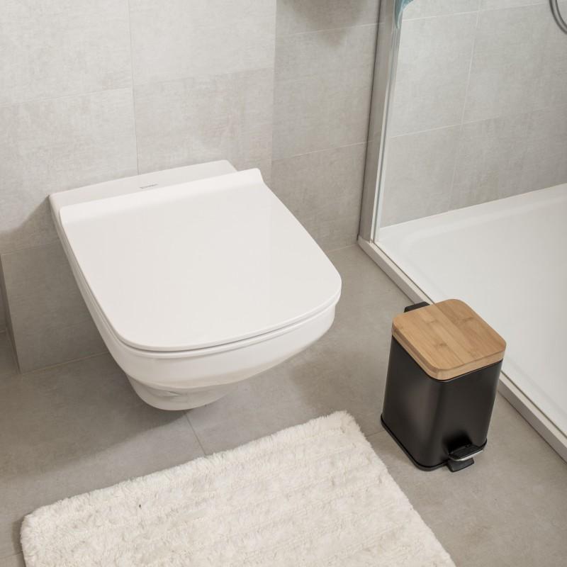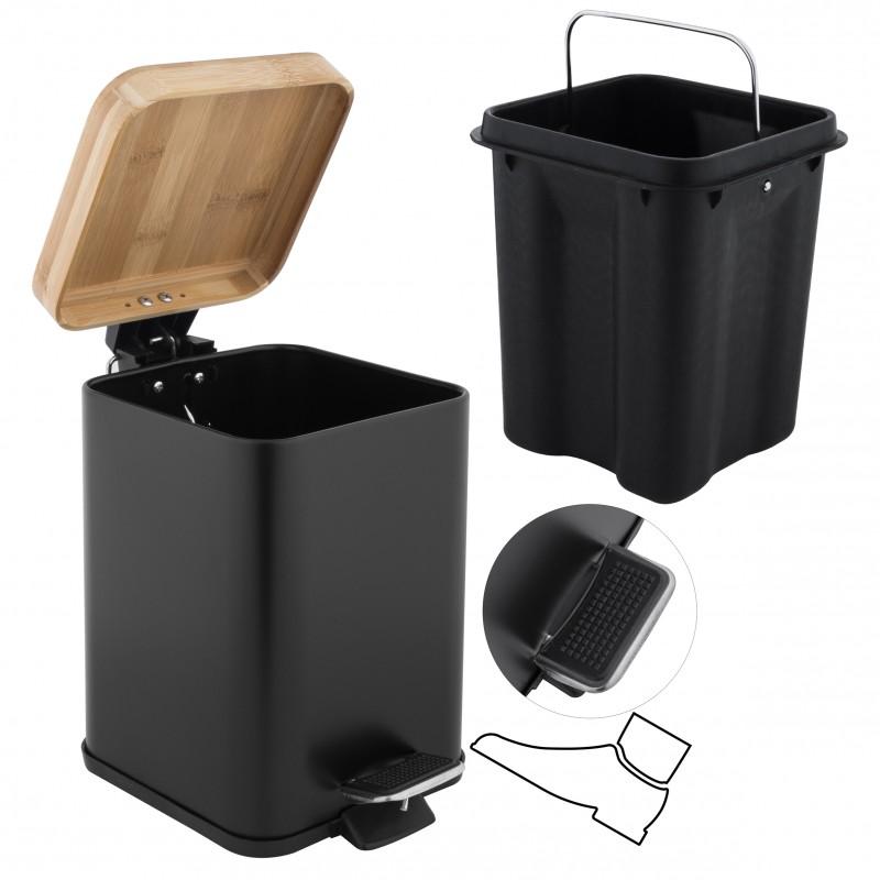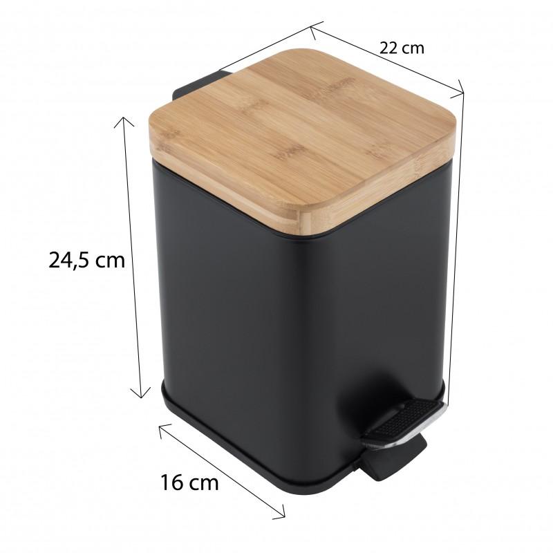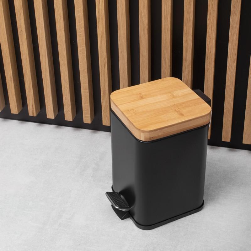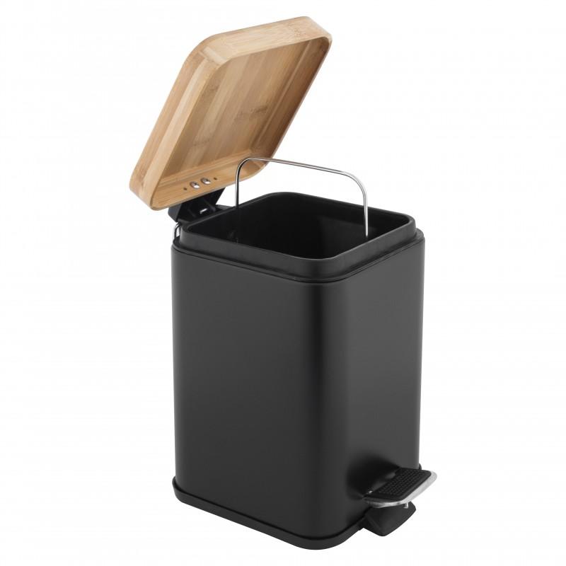 Kosz na śmieci do łazienki / biura z pedałem (bambus, czarny, kwadratowy) - Yoka