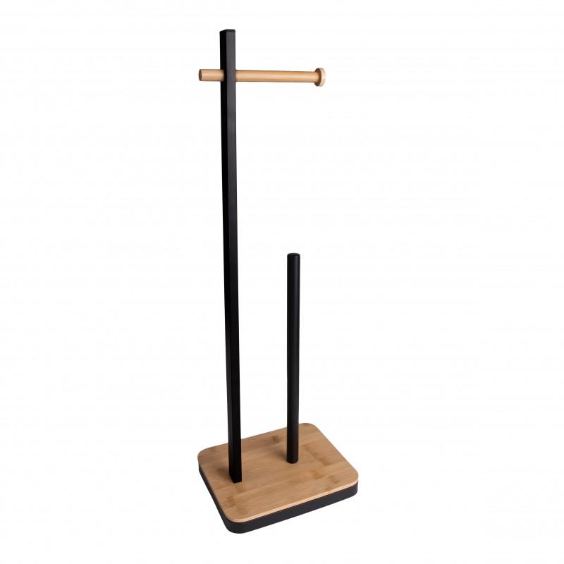 Stojak na papier toaletowy / uchwyt / wieszak WC z zapasem (czarny, bambus) - Yoka