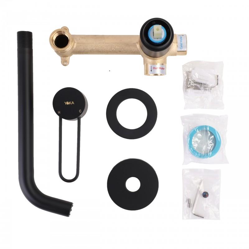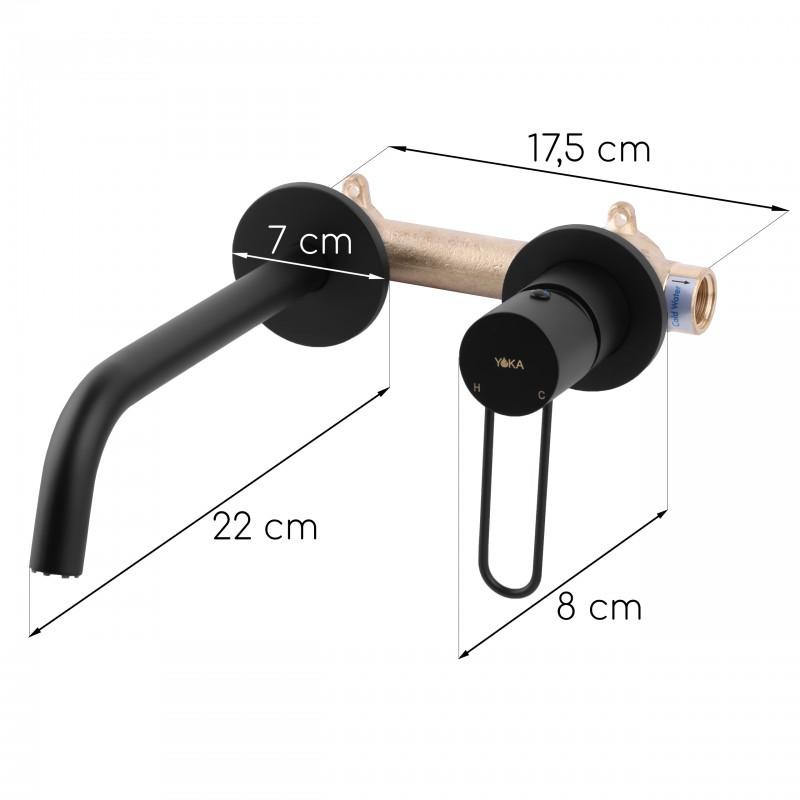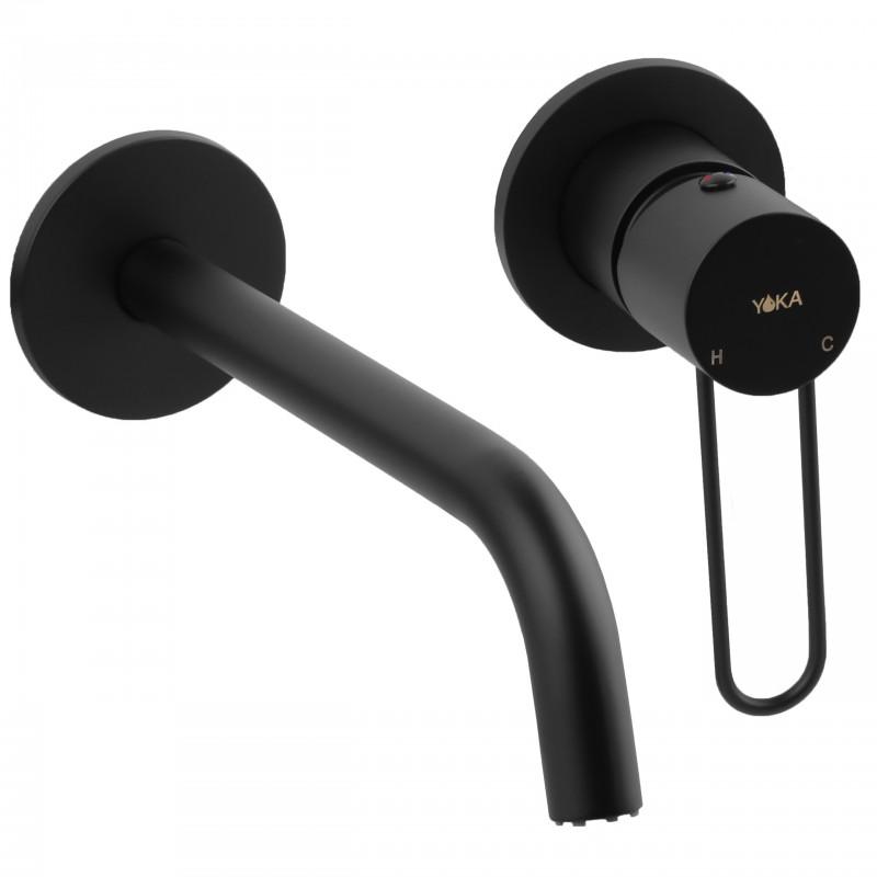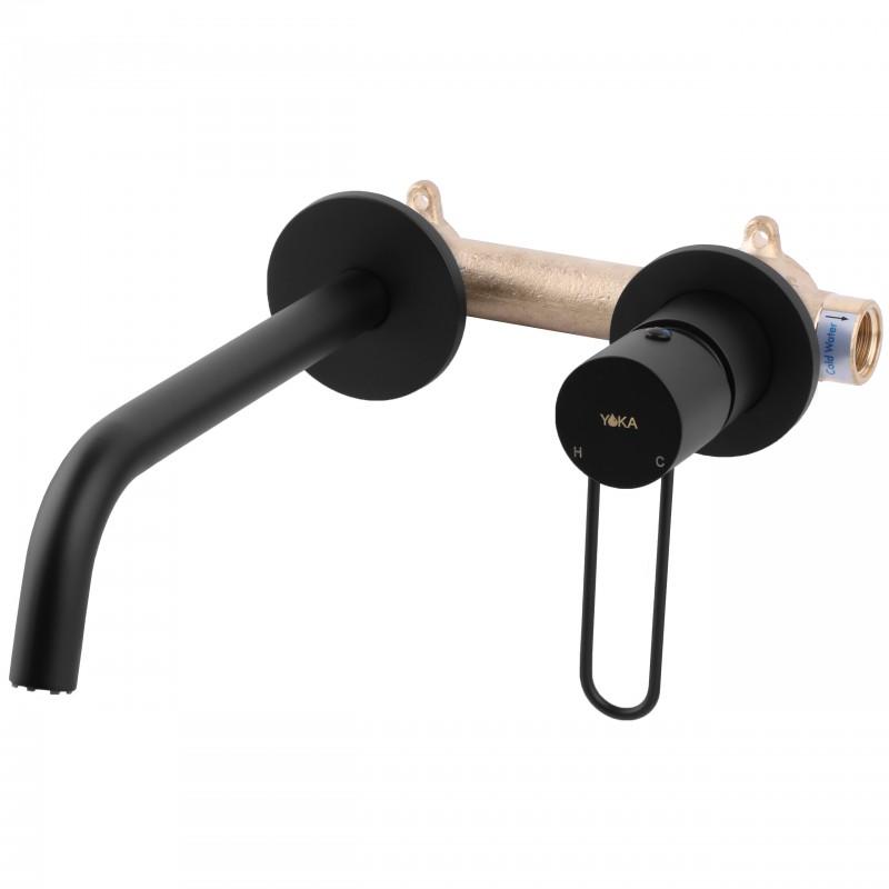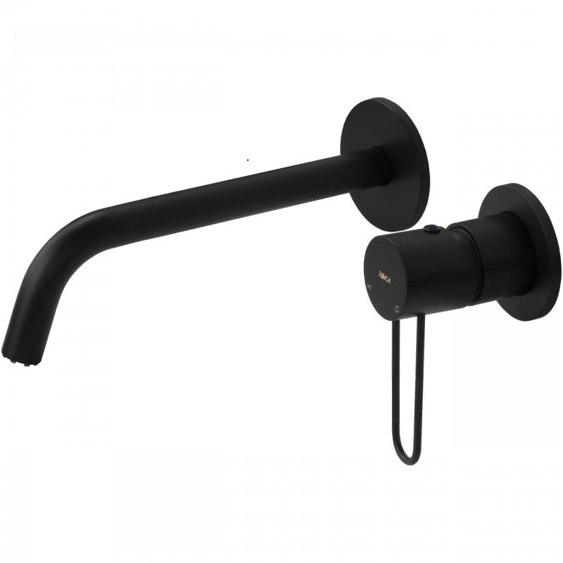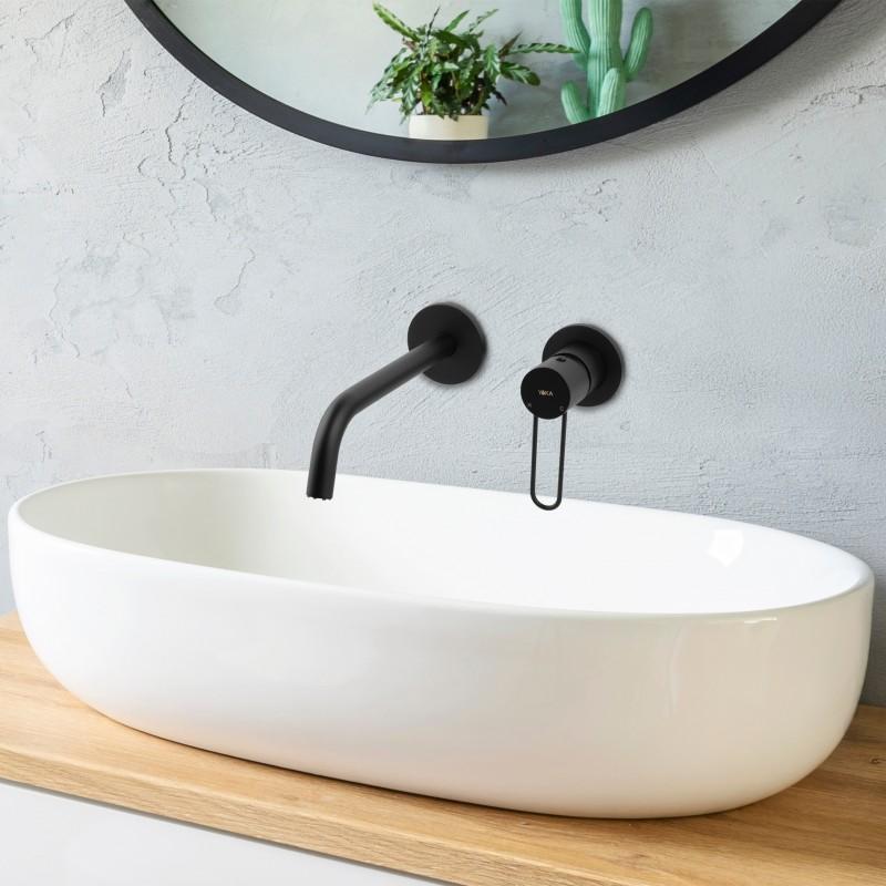 Mechaniczna bateria umywalkowa, podtynkowa, jednouchwytowa ze stałą wylewką i ceramiczną wymienną głowicą 35 mm. Korpus baterii wykonano z mosiądzu. Długa, ścienna wylewka o wyprofilowanej końcówce będzie pasować do większości umywalek.