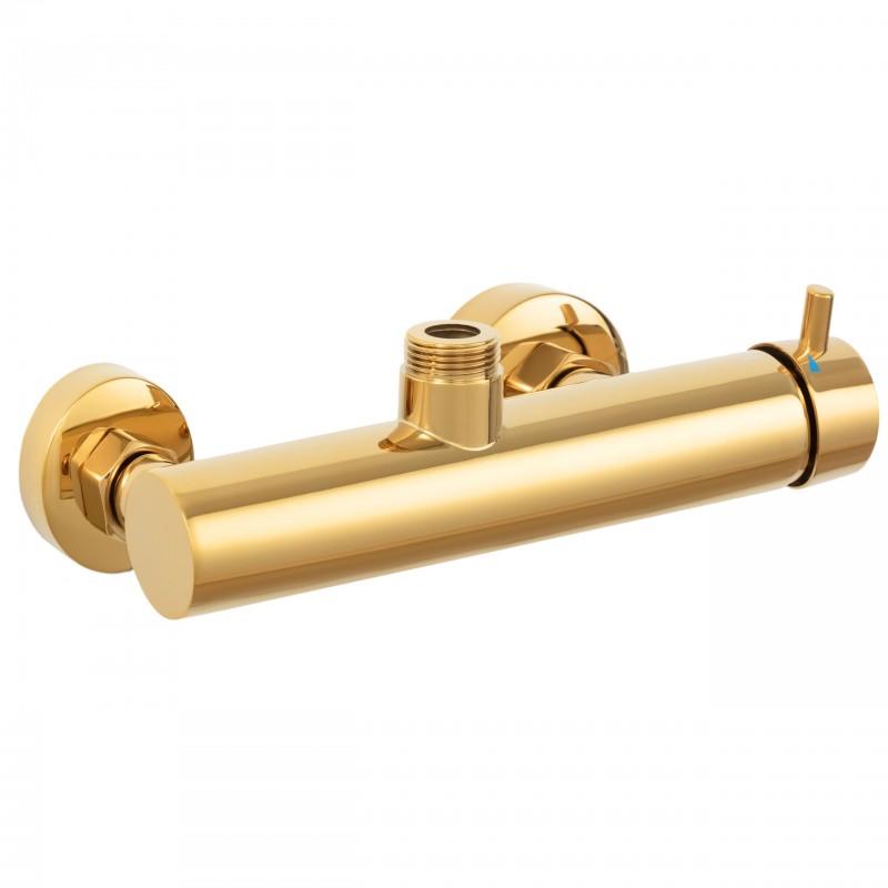 Błyszczące, złote wykończenie dodaje łazience luksusowego charakteru. Bateria wyróżnia się nie tylko eleganckim designem, ale także funkcjonalnością – połączenie estetyki z ergonomią czyni codzienne korzystanie z prysznica czystą przyjemnością.