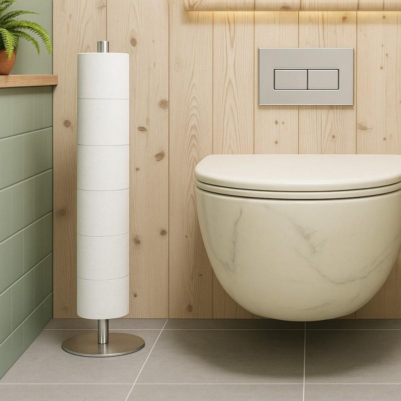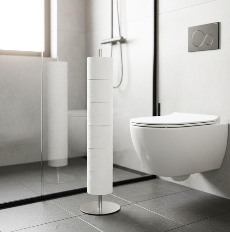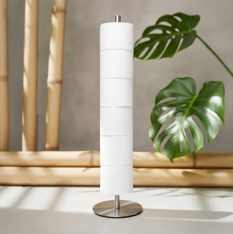 Nowoczesny, wolnostojący stojak na zapasowy papier toaletowy to idealne rozwiązanie dla osób ceniących porządek i styl w łazience. Zaprojektowany z myślą o przechowywaniu aż 6 rolek papieru toaletowego, pomaga utrzymać zapas w zasięgu ręki i zapobiegać niespodziankom związanym z nagłym brakiem papieru. Wykonany z wysokiej jakości stali pokrytej chromem, stojak wyróżnia się eleganckim srebrnym połyskiem oraz wyjątkową trwałością. To praktyczne akcesorium łazienkowe łączy funkcjonalność z estetyką, dodając wnętrzu nowoczesnego charakteru.