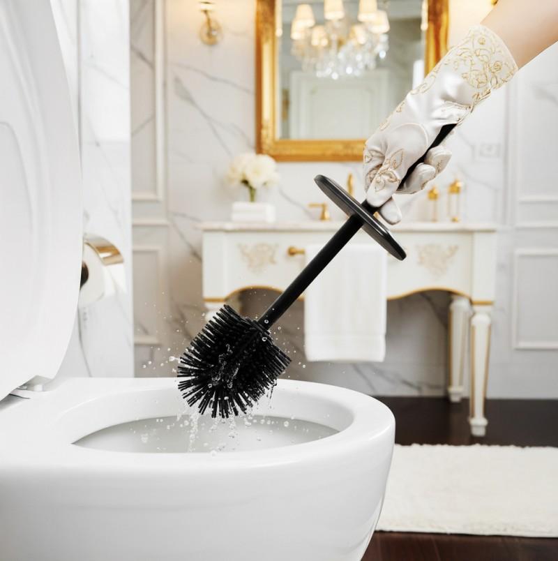 Ta nowoczesna szczotka toaletowa łączy w sobie wysokiej klasy materiały i przemyślany design, aby zapewnić maksymalną higienę oraz wygodę na co dzień. Wykonana z wytrzymałej stali oraz elastycznego silikonu, wyróżnia się odpornością na korozję, zabrudzenia i odkształcenia. Eleganckie czarne, matowe wykończenie sprawia, że szczotka prezentuje się stylowo i uniwersalnie, stanowiąc funkcjonalną ozdobę każdej łazienki. To rozwiązanie dla wymagających – stawia na jakość wykonania i nowoczesny wygląd, górując nad tradycyjnymi plastikowymi szczotkami.