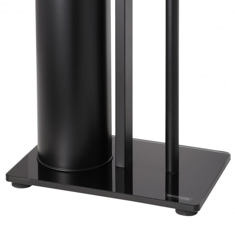 Wykonany z wysokiej jakości stali malowanej proszkowo w kolorze czarnego matu oraz wyposażony w solidną podstawę z hartowanego szkła, gwarantuje stabilność, trwałość i ponadczasowy styl.