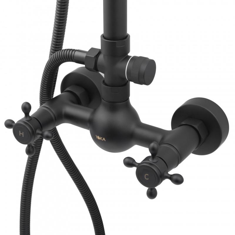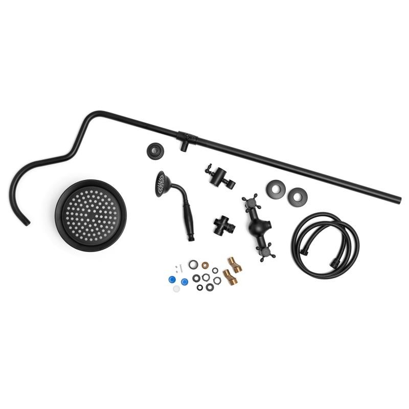 Zestaw prysznicowy w stylu retro z baterią dwuuchwytową oraz przełącznikiem strumienia wody między deszczownicą, a słuchawką. Doskonałą jakość czarnej powierzchni gwarantuje nowoczesna technologia malowania proszkowego. Zestaw zawiera oryginalną deszczownicę o średnicy 21 cm oraz słuchawkę prysznicową z nowoczesnym systemem ANTI-CALC - zapobiegającym osadzaniu się kamienia.
