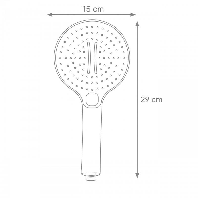 Dzięki dużej i szerokiej głowicy, słuchawka zapewnia obszerny strumień wody, który równomiernie rozkłada się na całym ciele, gwarantując większy komfort codziennego użytkowania.