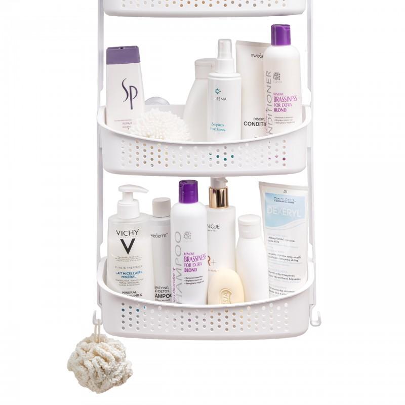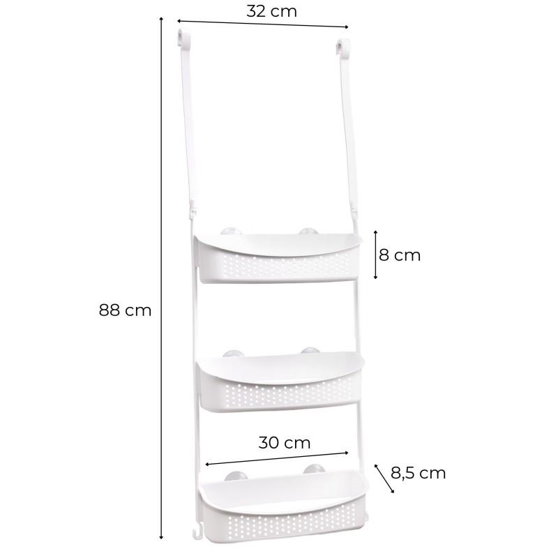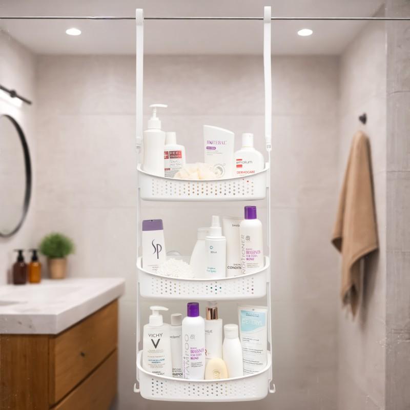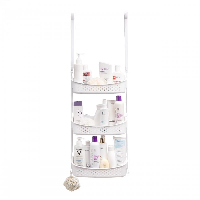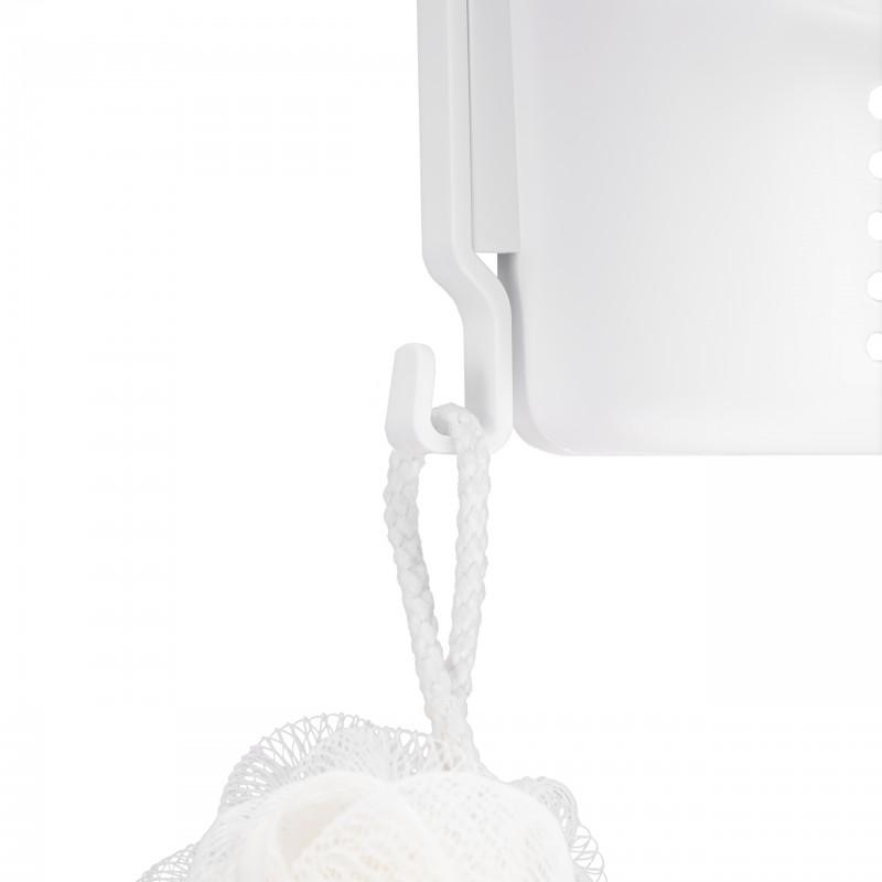 Dzięki elastycznym ramionom, półkę można łatwo zaczepić o ramię deszczownicy lub górną krawędź drzwi kabiny prysznicowej.