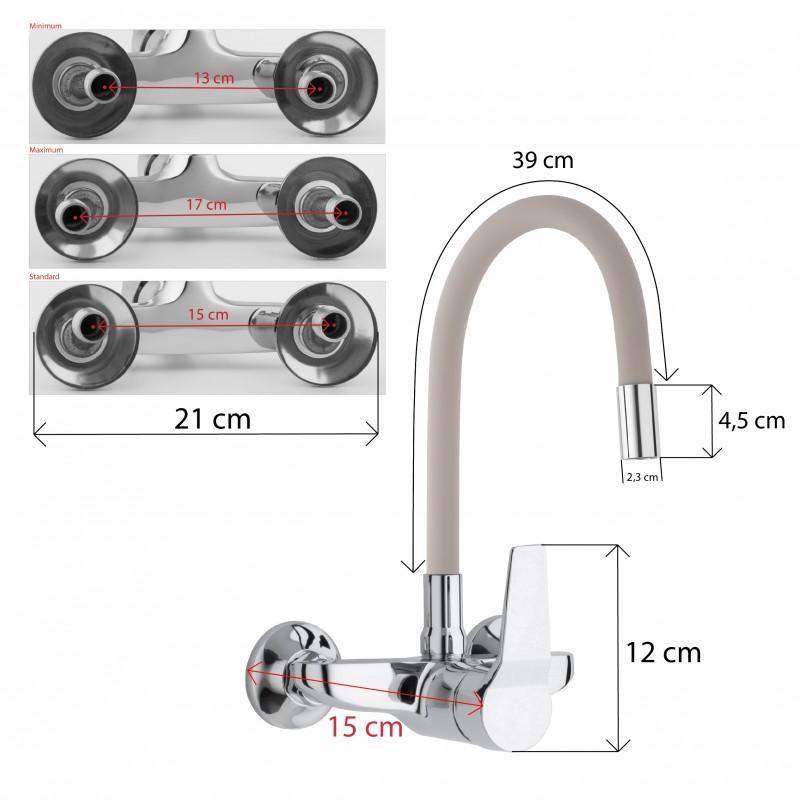 Bateria kuchenna ścienna z elastyczną wylewką - beż