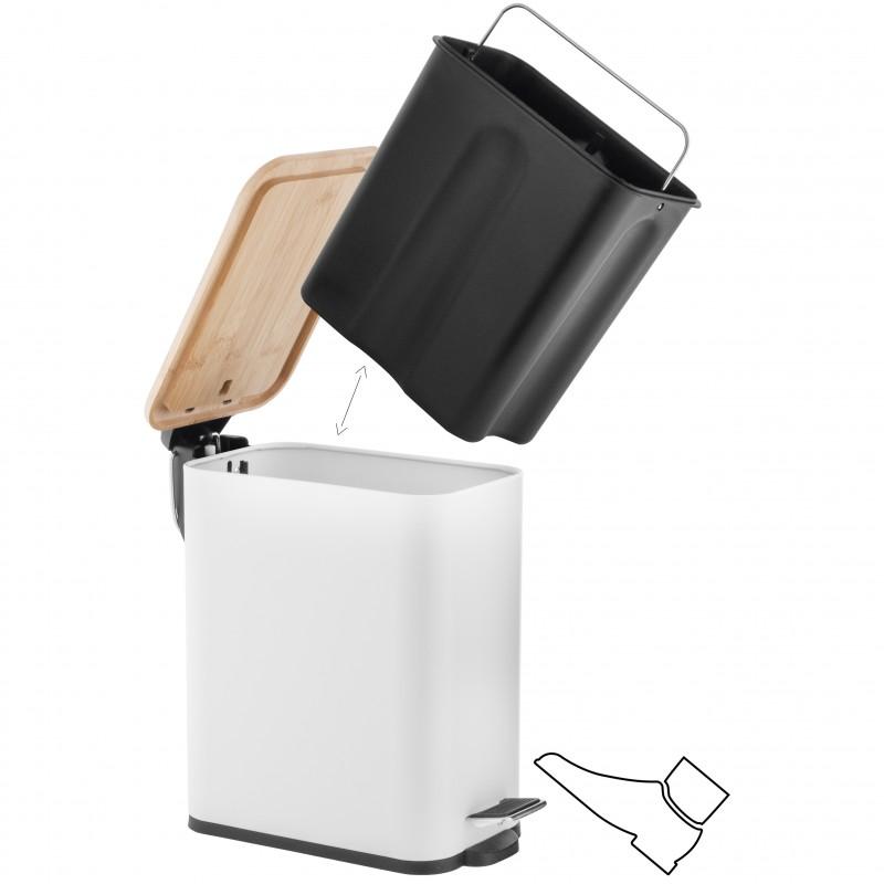 Higieniczne rozwiązania – wyjmowany pojemnik przy szczotce oraz wiaderko z uchwytem w koszu ułatwiają czyszczenie i opróżnianie.
