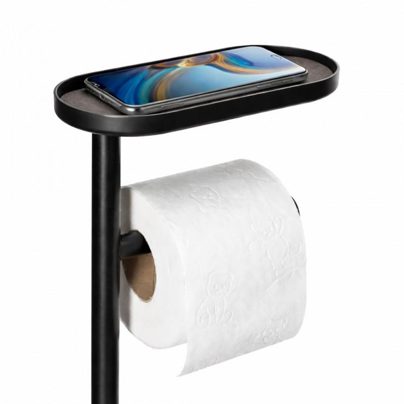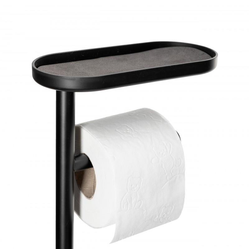 W jednym miejscu masz papier toaletowy, szczotkę WC oraz półkę na telefon / zapasową rolkę / drobiazgi – idealne rozwiązanie do małych łazienek i nowoczesnych wnętrz.